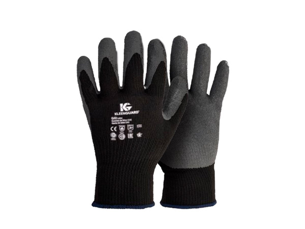 Los guantes KleenGuard® G40 Látex tienen un excelente nivel de agarre en seco, destreza y comodidad. Su tejido de punto de poliéster y algodón otorga respirabilidad que se traduce en mayor productividad del usuario cuando se le compara con otros guantes de protección general, tales como el cuero y la carnaza